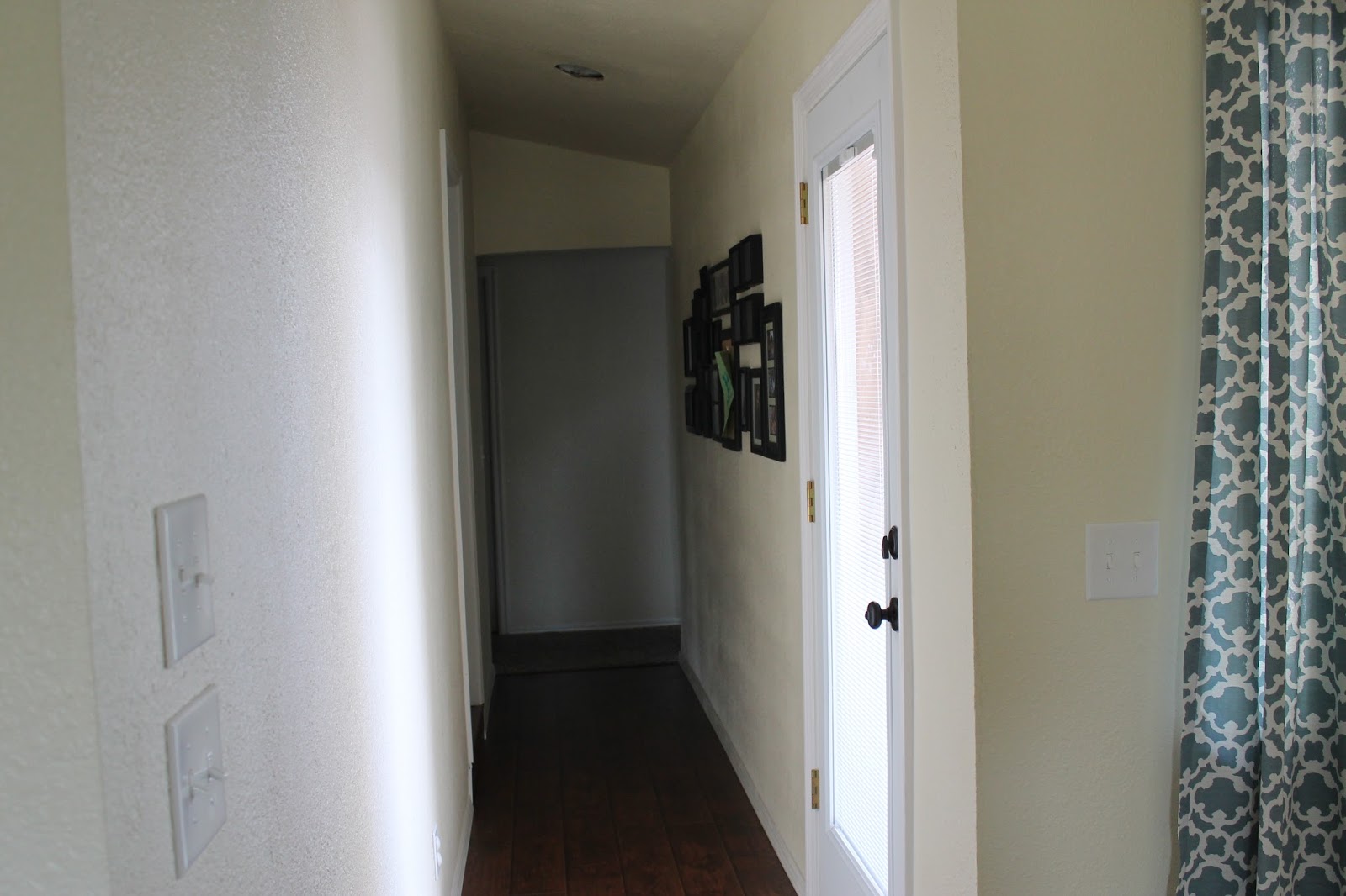 Ok, moving on to the other hallway. This leads to the back part of the house where all the bedrooms are. When we first moved in the outside “wall” of this hallway was actually the big glass sliding doors so you could look out and see the courtyard. (thank goodness it doesn’t look like that anymore!)