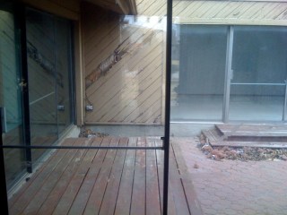 Seriously, that was what you saw walking in the front door. There were giant glass sliding doors on all three sides of the courtyard. So, when you came in the front door you looked through sliding glass doors into the courtyard and then saw through the farther set of doors into the master bedroom. Yep. Not ok.