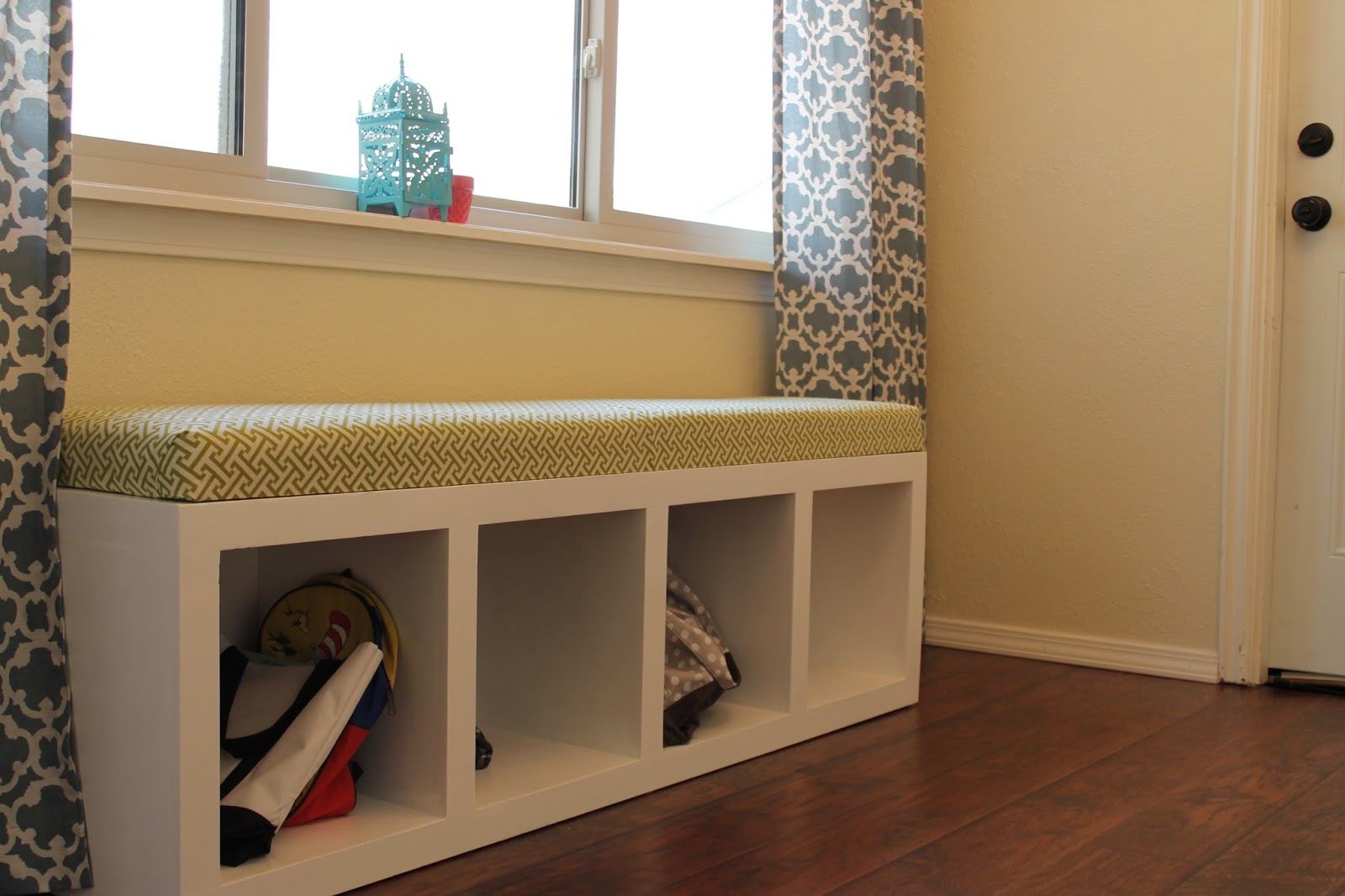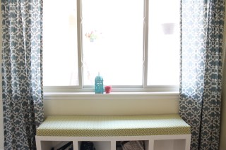 I’ve been on the hunt for baskets to add to the bench but haven’t been able to find what I’m looking for. For now it is a handy place to stash my purse, the diaper bag, the library books and our pool bag.