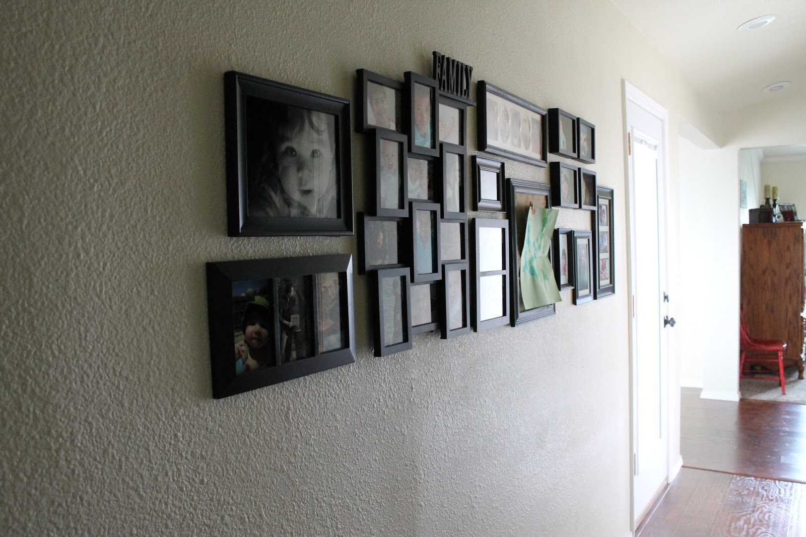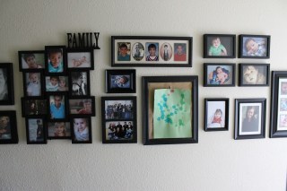The major accomplishments in here were texture, paint, and laying the flooring. I also used this space for a photo gallery wall which I LOVE. I even included a little spot to hang some of Elias’ “artwork”. It just uses a little mini-clothespin so I can swap it out whenever he creates something new. At just17 months he’s not exactly churning out masterpieces, but he uses stickers and those dot paints and I am a proud momma who loves them. 🙂