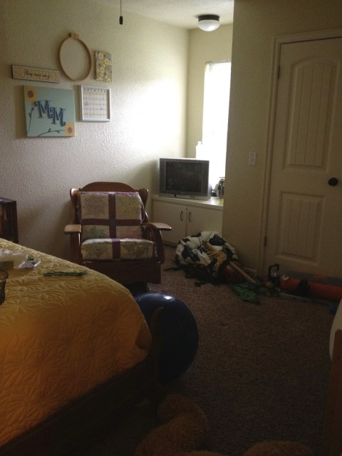 I also hung a little bit of stuff on the wall as you can see in this pic. All of that will get reused in the nursery. It’s just felt like this room has never really had a defined layout or purpose except when we actually have guests in there. It’s hard to keep clean because we don’t have good systems in place for the stuff that goes in there. And even though I had made attempts to “decorate”, this room just never really came together very well. Hopefully, all that will change soon!