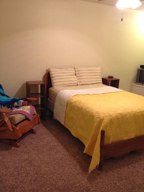 This room is at the end of the hallway past Elias’ room and the laundry nook. It is almost identical to E’s room (just a couple feet bigger). It was actually the only room in the house that we left the carpet in when we moved in so this is the room that we lived out of for the first few months we lived in the house. On a mattress. On the floor. Oh yeah…forgot about those days…