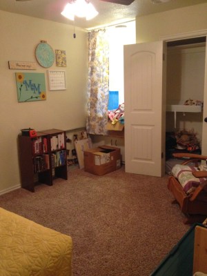 I realize that it doesn’t look exactly “done” since there is still obviously a lot of decorating and cleaning to do. A lot of that is waiting on the changing table and a few more trips to the thrift store π But all the major work and necessities are in place which is a huge relief since this baby’s arrival is quickly approaching. I will (hopefully) get in there with my “real camera” and give a full tour after we get the final touches done in there. Here’s my to-do list that’s left: