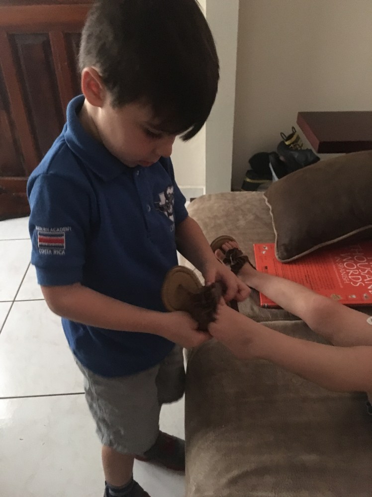 In the mornings when we are getting ready for school, this servant-hearted guy helps his sister put her shoes on. It’s the sweetest.
